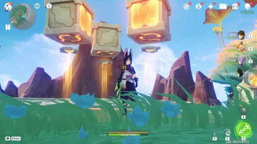비행선 타면서 파티에 리넷이 있으면 리넷의 원소 스킬을 사용해서 조타수 공격 시 비행선이 움직입니다. 리넷이 없으면 비행선 타기 전에 주변의 정찰 경비 기계 2마리 죽이시고 우시아 에너지 먹고 조타수 공격하시면 되요! 비행선이 움직이면서 이상 기후가 두 번 등장하는데 제 1페이즈에서 바람 슬라임 4마리 아무 원소 활 캐릭터로 명중시키면 되는데 오른쪽 왼쪽 윈드필드 타고 비행선 위로 착지해서 터뜨리시면 되요! 제 2페이즈에서 바람 슬라임 7개 마찬가지로 비행선 위에서 위치 잘 잡아서 명중시키면 비행선 안에서 신묘한 보물상자 먹습니다. |