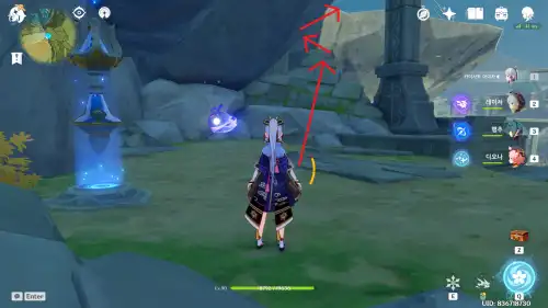절벽 위에 있음. 아래 사진처럼 워프 포인트에서 등반 가능 |