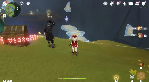 만약 못 먹고 떨어졌으면 명룡이나 올로룬,시틀라리로 노란 꽃봉오리같은 문양에 공격키 꾹 눌러서 먹은 뒤 점프키 꾹 누르면 슈퍼점프로 올라갈 수 있음 |