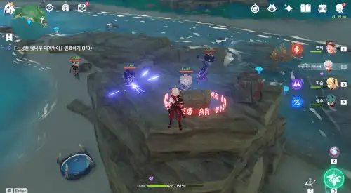 앞에 있는 츄츄족 다 잡고, 근접평타(대검 등)으로 때리면 90도씩 돌아감. 다돌면 색깔 바뀌고 다음꺼 돌리면 됨 |