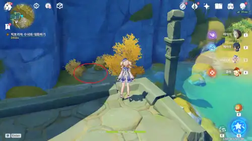 해당 핀 토템 위치로 변경했습니다. 바위토템이랑 상호작용하면 상자까지 갈 수 있는 다리가 놓입니다. 거기서 상자랑 눈동자 같이 먹은 다음에 천형산 선령 #544 따라가면 됩니다. |