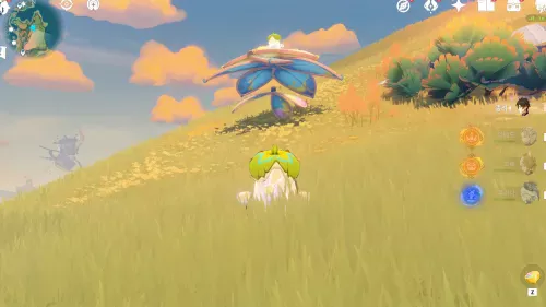 이 지점에서 꽃 아래에 바람슬라임 다 터뜨리면 카메라 고정된 상태로 얘가 꽃타고 이동합니다. 후에 슬라임들 토벌,츄츄족 토벌,바람슬라임 제거 하면서 짝사랑 찾아주면 됩니다. |