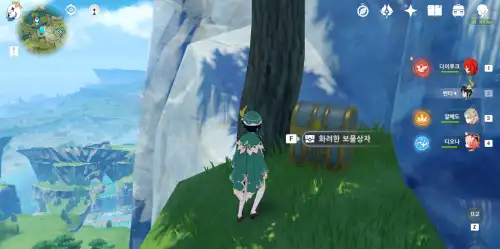 산 꼭대기 용머리 퍼즐 있는 곳 측면 하단쪽에 화려한 상자 있음. |