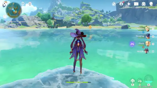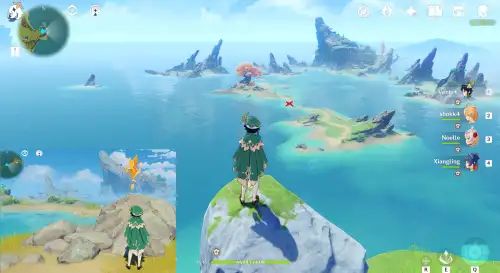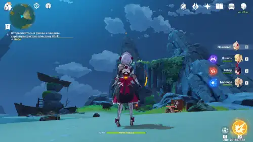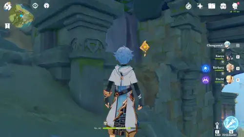 1.벤티 E스킬 2.기본캐를 일곱신상과 공명하여 바위원소 획득 → 바위 신의 눈동자 밑에 바위에다가 수작으로 서게 e스킬 쓰기 → 점프해서 먹기 |