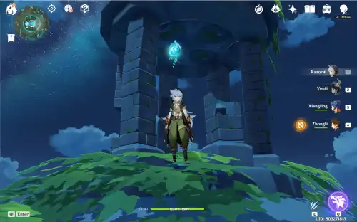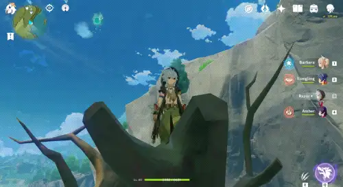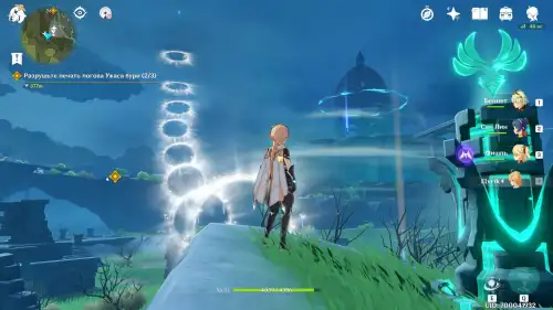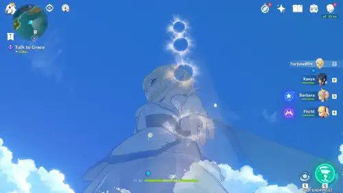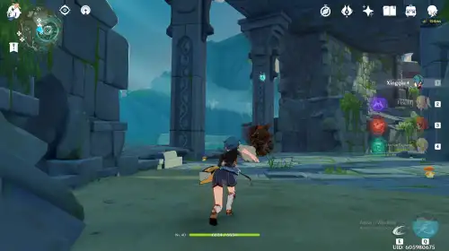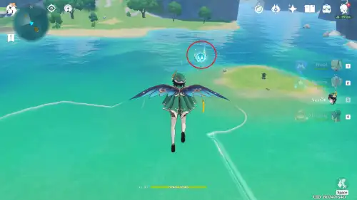 바람신의 눈동자 해당 위치 아래쪽에 "바람원소"에 반응하는 기둥이 있어요. 그걸 활성화시키고 바람타고 올라가면 됩니다 |