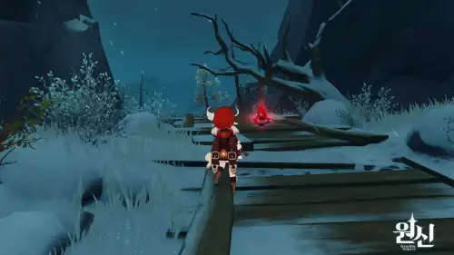 공중에 있음 / 17과 18 사이에 언덕 위로 올라가서 활강하면 됨 / 언덕 위에 횃불 있으니 몸 녹이기 가능함 |